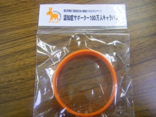 講習後、認知症を支援する『目印』としてブレスレット(オレンジリング)をもらいました。